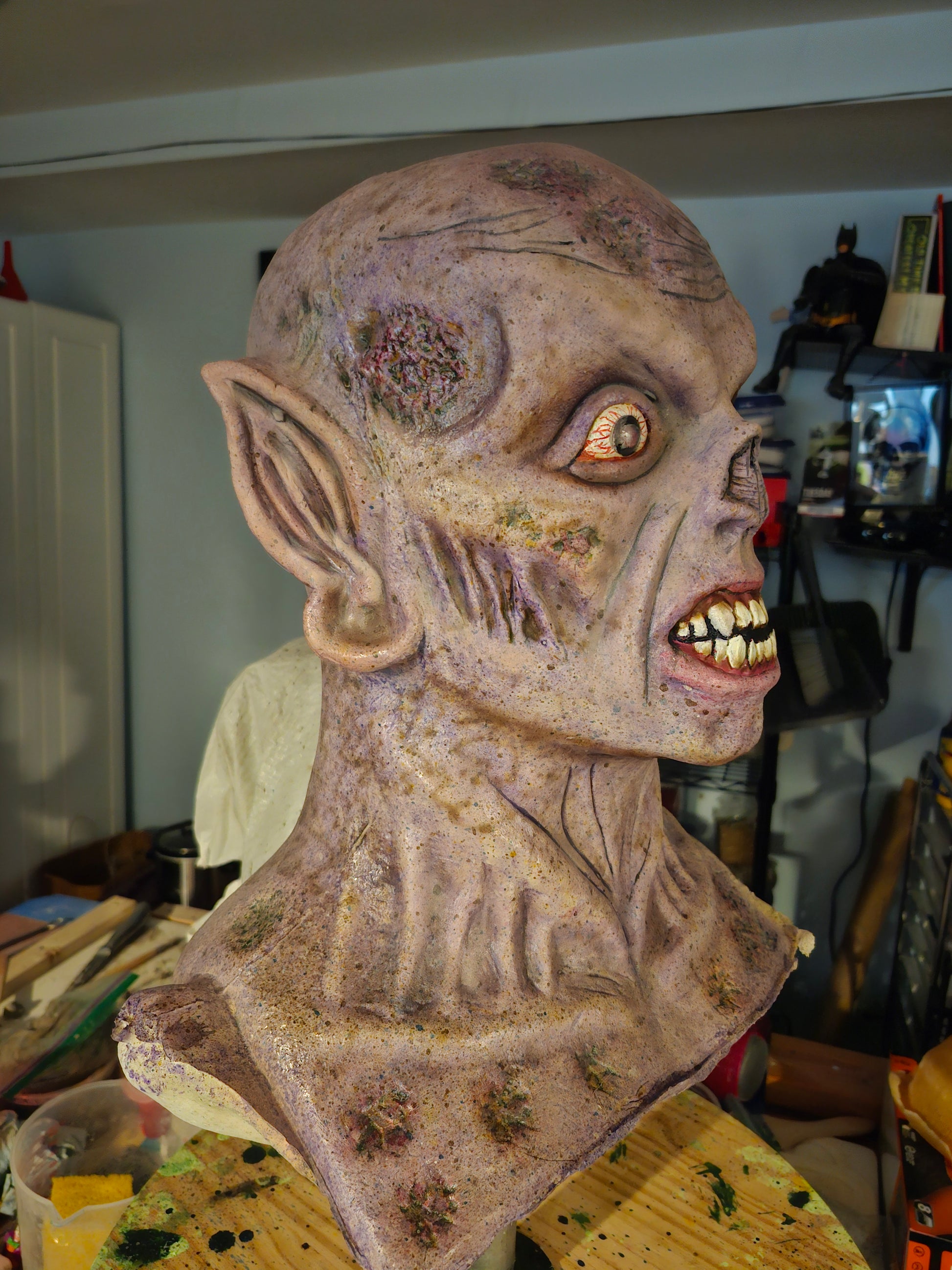 The Graveborn Vampire looks like it clawed its way out of damp earth after a century of bad decisions. Sunken flesh, rotting textures, diseased coloration, and dead, glassy eyes give this piece the kind of realism that makes people step back before they realize it’s not breathing.